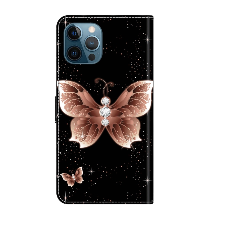 Funda Protectora para iPhone 12 Pro Max y 13 Pro Max Crystal 3D Cuero a Prueba de Golpes (Mariposa de Diamante Rosa)