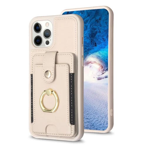 Funda para iPhone 12 Pro Max Bf27 Anillo de Metal Tarjeta Bolsa Titular Caja del Teléfono (Beige)