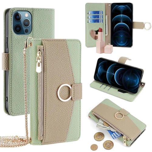Funda de Cuero Crossbody para iPhone 12 Pro Max Litchi Texture (Verde)