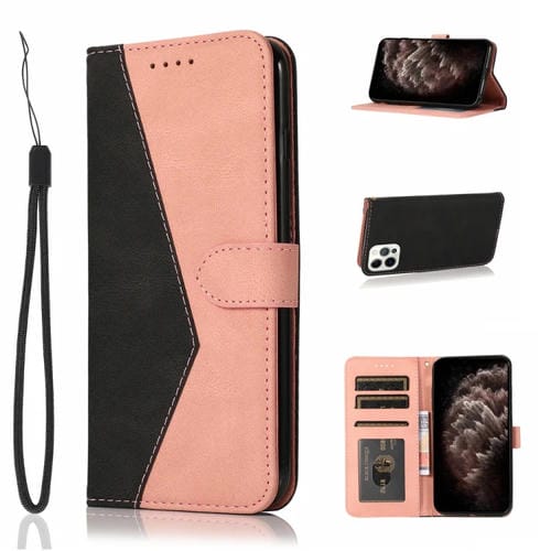 Estuche para Teléfono iPhone 12 Pro Max Cuero con Costuras Dos Colores (Oro Rosa Negro)