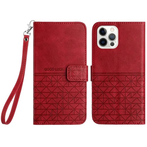 Funda para iPhone 12 Pro Max Cuero Textura Rómbica con Cordón (Rojo)