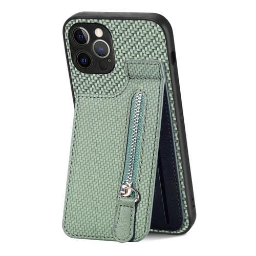 Funda de Teléfono para iPhone 12 Pro Max con Cremallera Vertical de Fibra de Carbono (Verde)