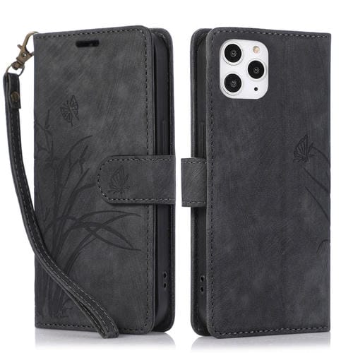 Funda para Teléfono iPhone 12 Pro Max Cuero con Relieve Mariposa Orquídea (Negro)
