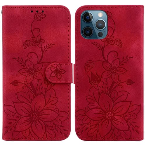 Estuche para teléfono iPhone 12 Pro Max Lily cuero en relieve (Rojo)