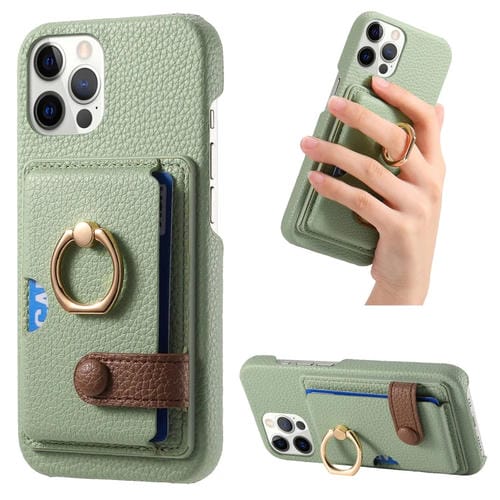 Funda para Teléfono iPhone 12 Pro Max Litchi Leather Oil Edge Ring Card Back (Verde Té)