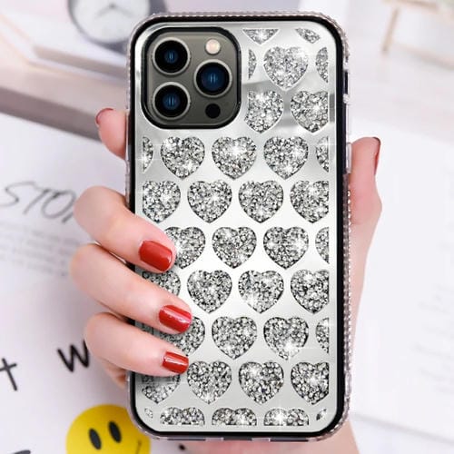 Funda para Teléfono iPhone 12 Pro Max Love Hearts Diamond Mirror TPU (Plata)