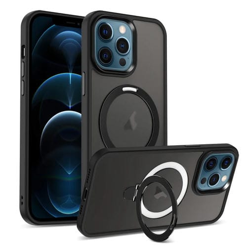 Funda para teléfono iPhone 12 Pro Max Magsafe Holder Skin-Feel PC Hybrid (Negro)