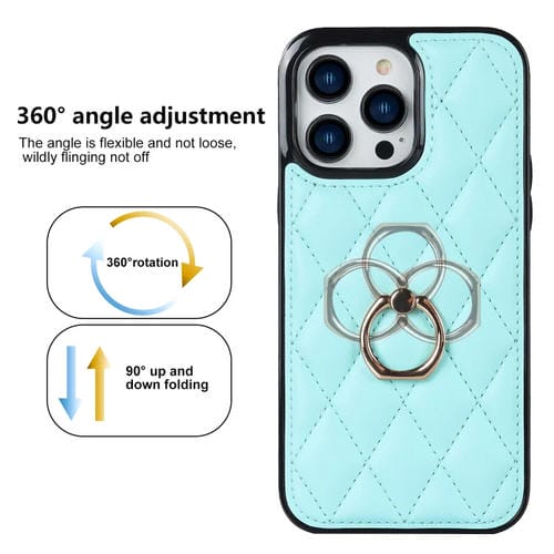Funda para iPhone 12 Pro Max Rhombic PU Cuero con Soporte para Anillo (Azul)