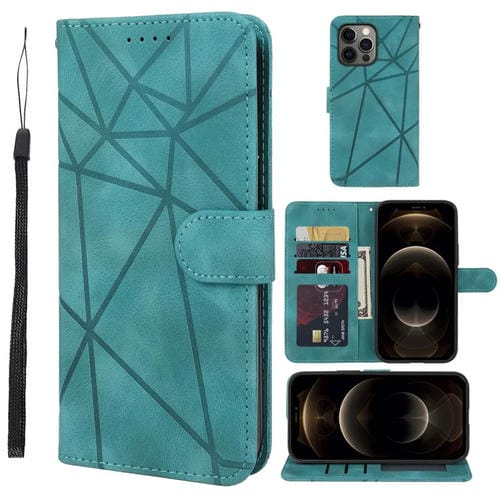 Funda para iPhone 12 Pro Max Skin Feel Cuero con Líneas Geométricas (Verde)