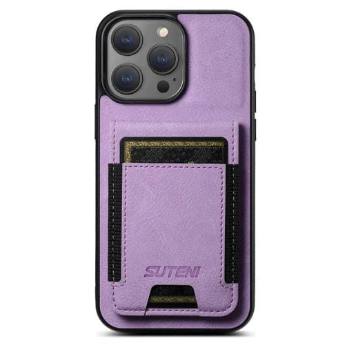 Funda para Teléfono Suteni H03 para iPhone 12 Pro Max con Soporte para Tarjeta Cuero Litchi (Púrpura)