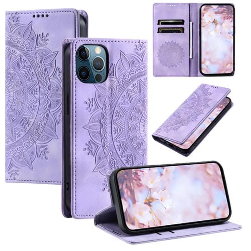 Funda de Cuero Magnética Totem para iPhone 12 Pro Max En Relieve (Púrpura)