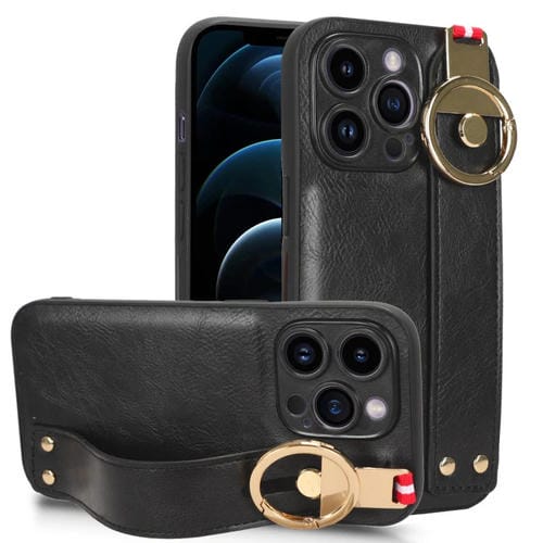 Funda para iPhone 12 Pro Max Wristband Leather Back Phone Case (Negro)