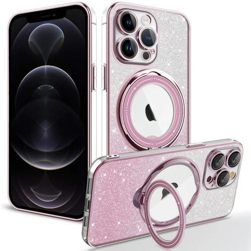 Estuche para Teléfono iPhone 12 Pro Rotación Magsafe Holder TPU con Brillo Degradado (Rosa)