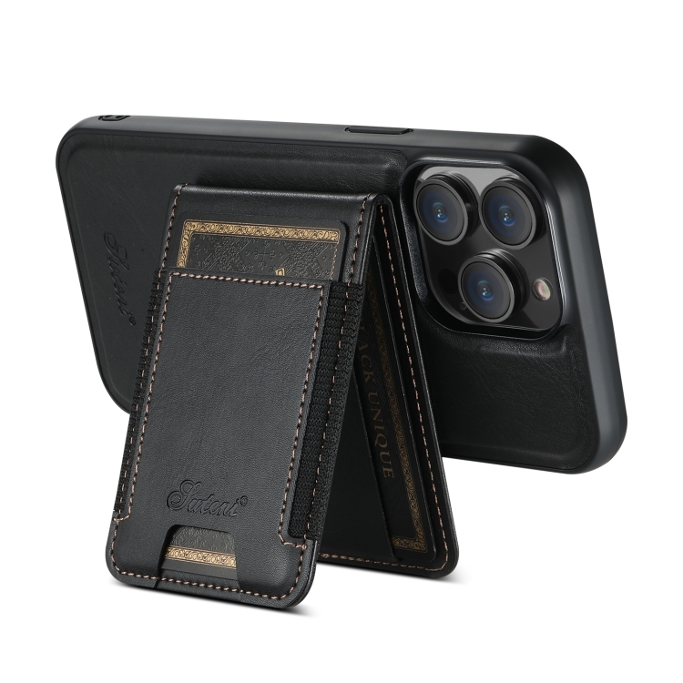 Funda para Teléfono Suteni H17 Oil Eax Leather Magsafe para iPhone 12 Pro con Billetera Desmontable (Negro)