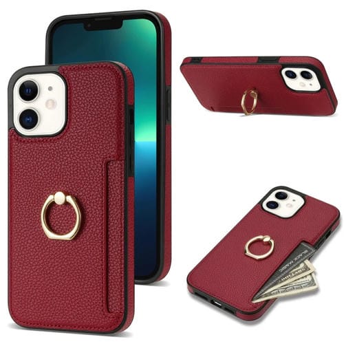 Funda Trasera para iPhone 12 Ring Card Litchi Cuero (Rojo)