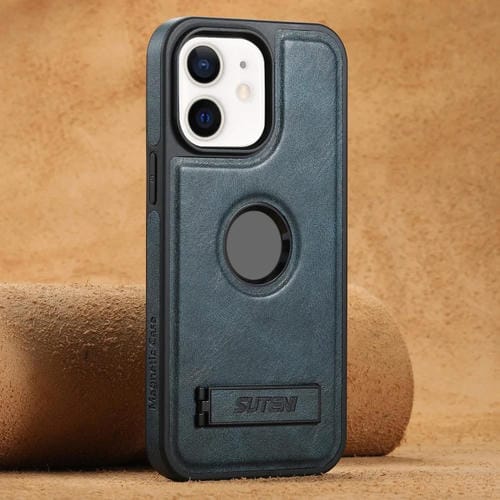 Funda Trasera Suteni G2 Magsafe para iPhone 12 Cuero con Soporte (Azul)
