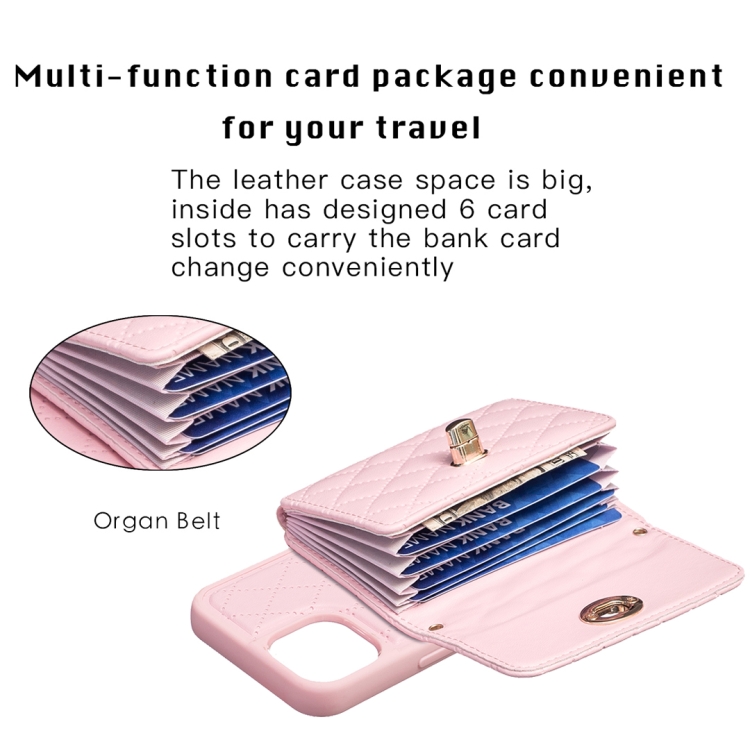 Caja de Teléfono de Cuero Rómbica para iPhone 13 Billetera con Hebilla de Metal Horizontal (Rosa)
