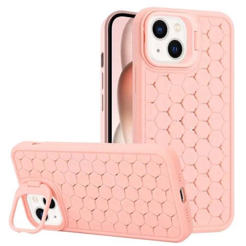 Funda para Teléfono TPU iPhone 13 con Soporte para Lente Radiante de Panal (Rosa)