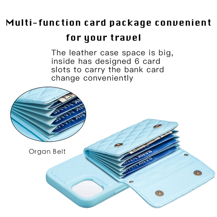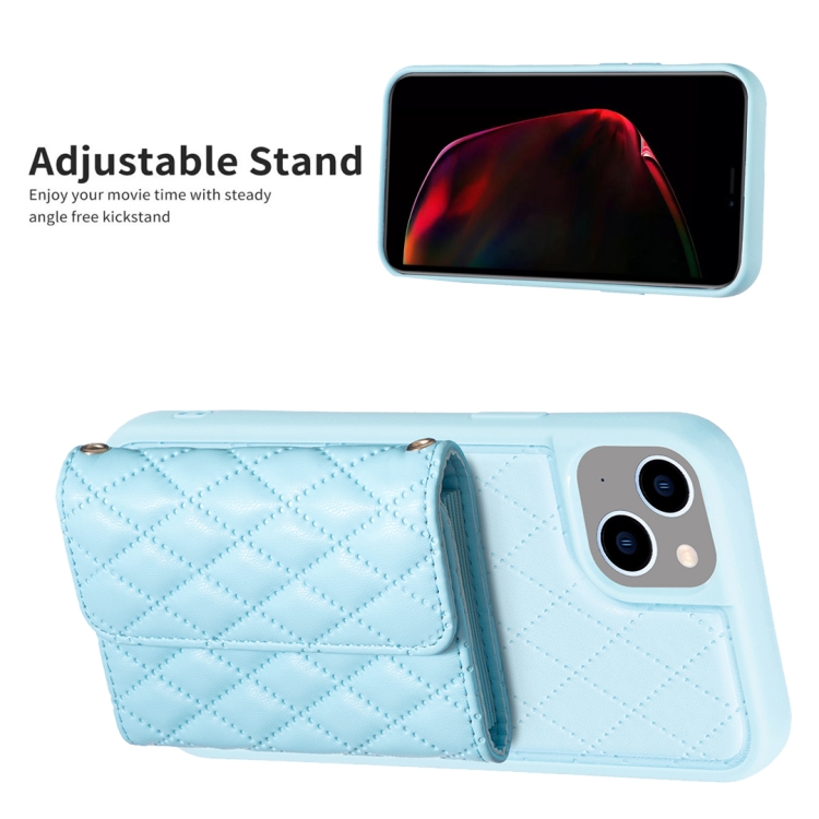 Funda para iPhone 13 Horizontal Wallet Rhombic Leather Phone Case (Azul)
