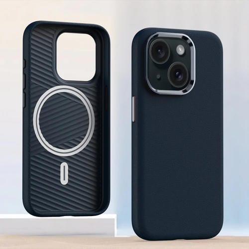 Marco de Lente de Metal Estuche para Teléfono iPhone 13 Magsafe Cuero a Prueba de Golpes Cobertura Total (Azul)