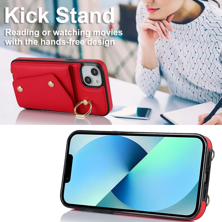 Funda para iPhone 13 Mini con Cremallera y Doble Cordón (Rojo)