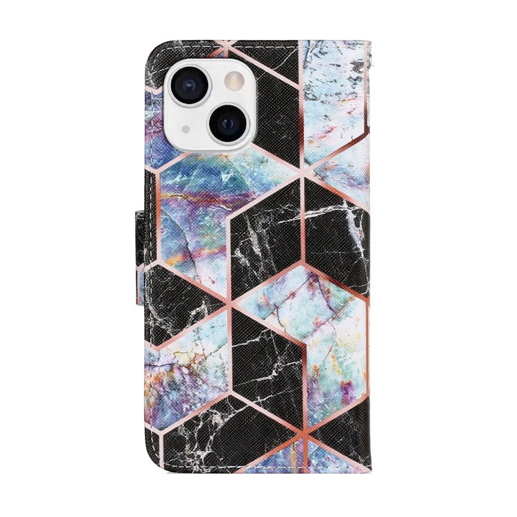 Funda de Cuero para iPhone 13 Mini con Patrón de Dibujo a Color (Mármol Negro)