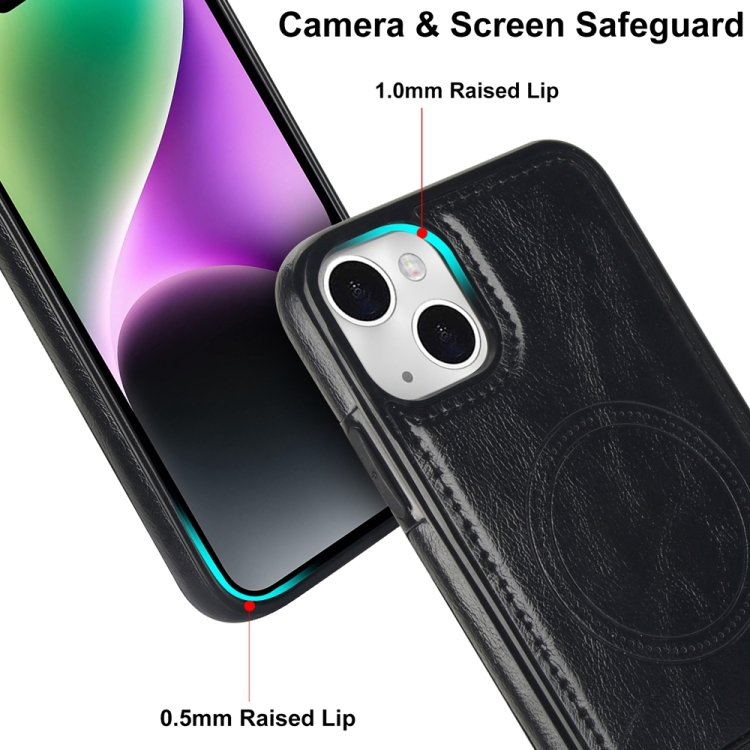 Funda para Teléfono iPhone 13 Mini Magsafe con Soporte Invisible de Cuero Retro (Negro)