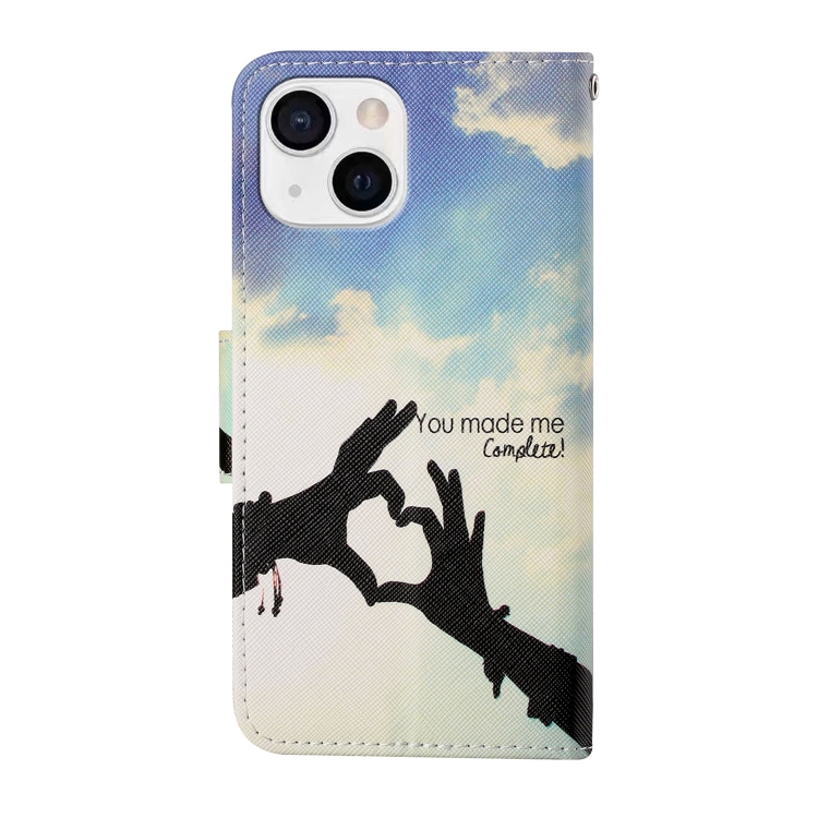 Funda de Cuero para iPhone 13 Mini con Tapa Horizontal y Patrón de Dibujo Coloreado (Gesto de Amor)