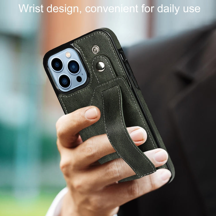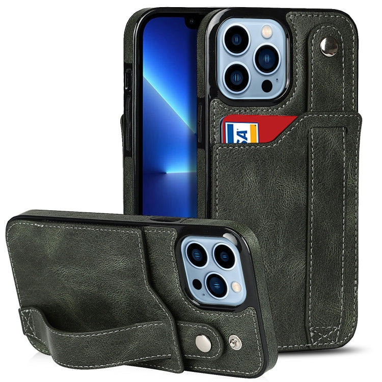 Funda para iPhone 13 Pro Crazy Horse Texture Cuero TPU + PU a Prueba de Golpes con Ranura para Tarjeta y Correa (Verde Esmeralda)
