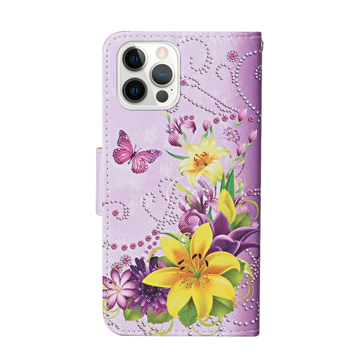 Estuche de Cuero para iPhone 13 Pro con Tapa y Patrón de Mariposa de Flor Amarilla