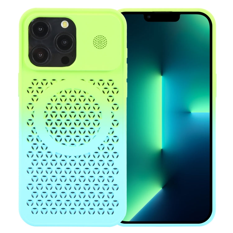 Estuche Magnético para iPhone 13 Pro con Aromaterapia y Enfriamiento de Panal (Verde Azul)