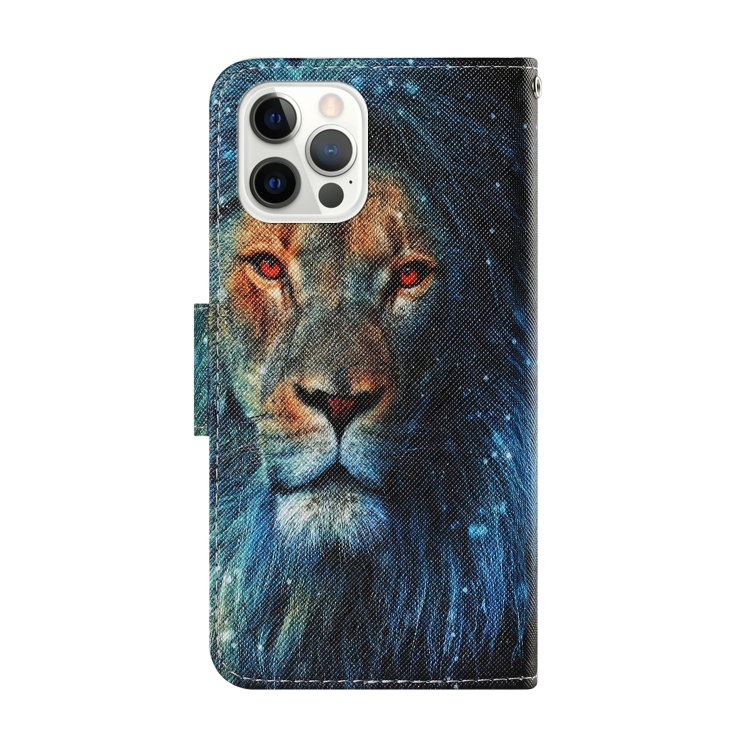 Estuche para Teléfono iPhone 13 Pro Cuero con Patrón de Dibujo Coloreado (León)