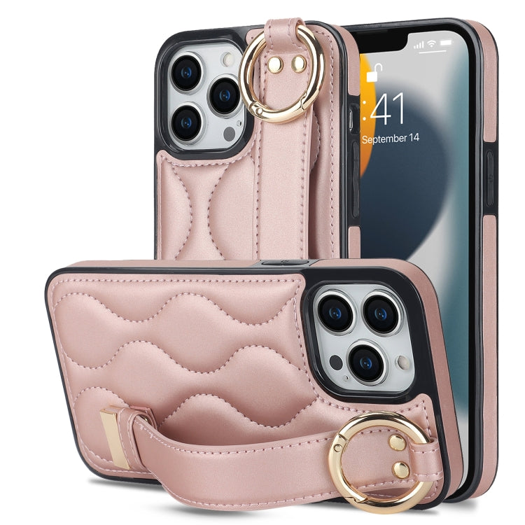 Funda para iPhone 13 Pro Antideslizante de PU con Anillo y Muñequera (Oro Rosa)