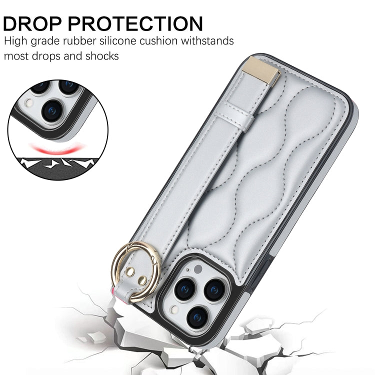 Funda para iPhone 13 Pro Antideslizante de PU con Anillo y Muñequera (Plata)