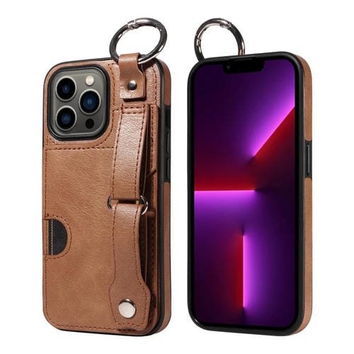 Funda para Teléfono iPhone 13 Pro con Anillo y Ranura para Tarjeta Textura de Pantorrilla (Marrón)