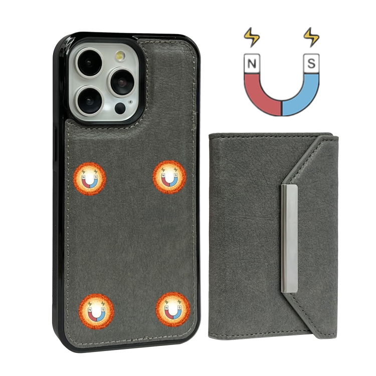 Funda para Teléfono iPhone 13 Pro con Bolsa y Ranuras para Tarjetas con Hebilla de Metal (Gris)