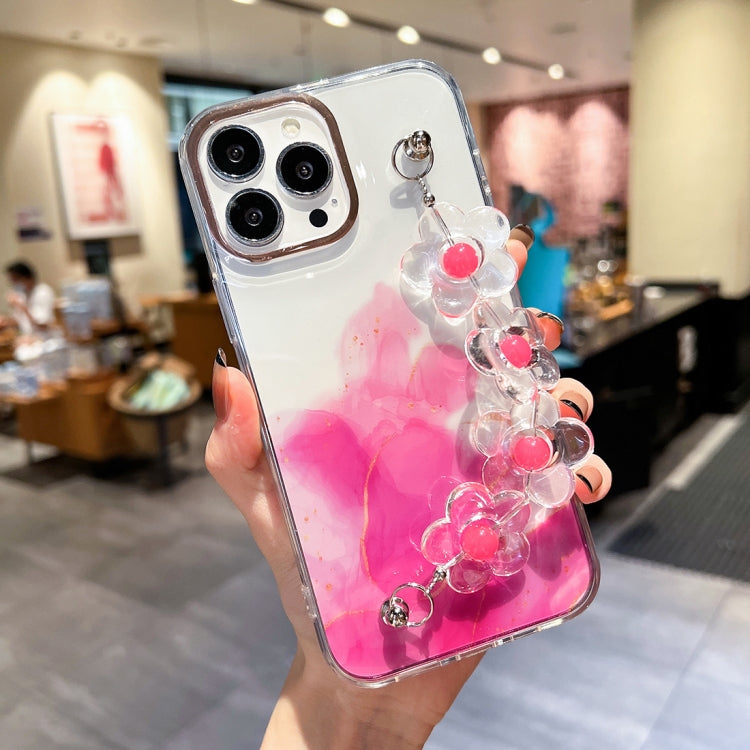 Funda para iPhone 13 Pro Gold Halo Marble Pattern con Pulsera de Flores (Rosa)