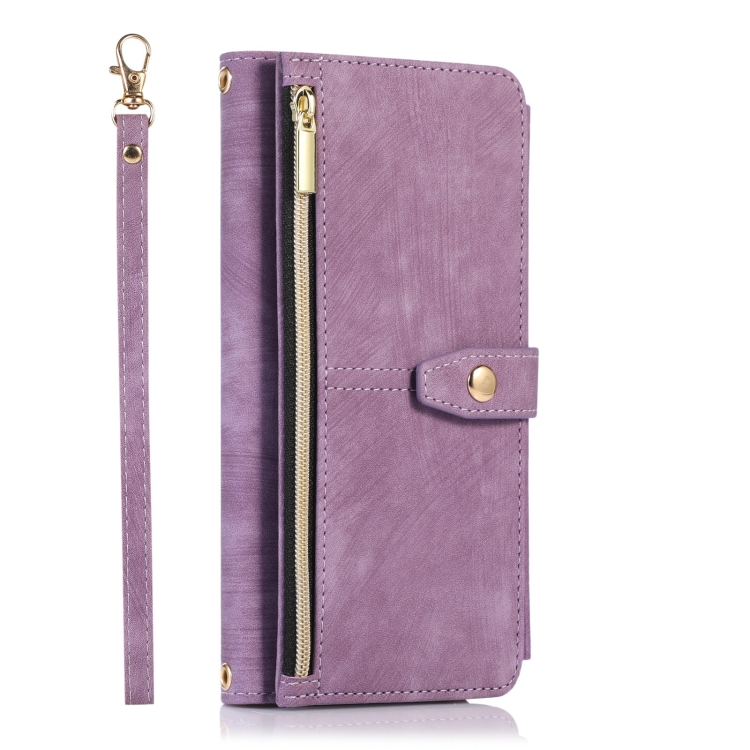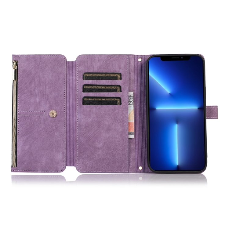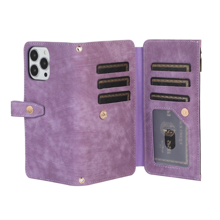 Funda para Teléfono iPhone 13 Pro Max Dream 9-Card Wallet Zipper Bag Cuero (Púrpura)