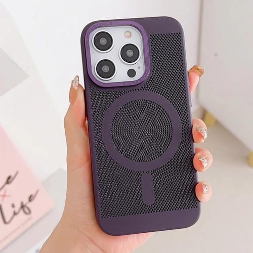 Funda magnética para teléfono iPhone 13 Pro Max Grid Cooling Magsafe (Púrpura Oscuro)