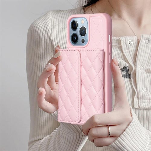 Funda para iPhone 13 Pro Max Horizontal Wallet Rhombic Leather Phone Case (Rosa)