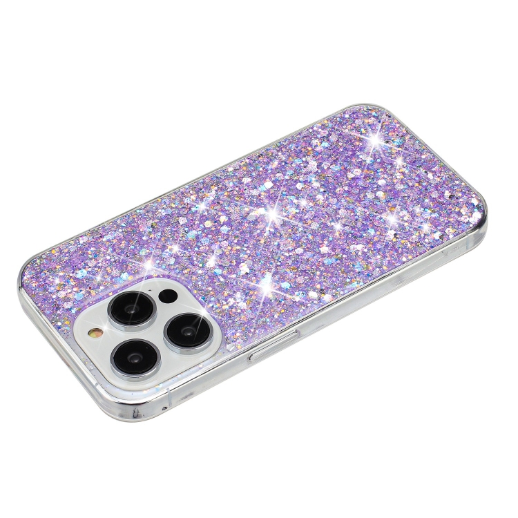 Funda para Teléfono iPhone 13 Pro Max Marco Transparente Glitter Powder TPU (Púrpura)