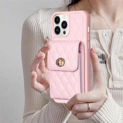Funda para iPhone 13 Pro Max Vertical Metal Hebilla Monedero Rombico Cuero (Rosa)