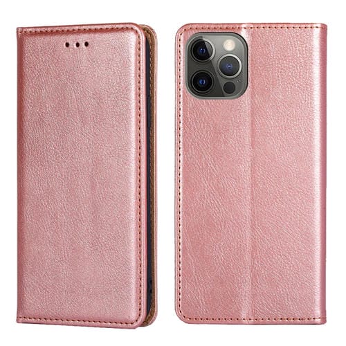 Estuche para iPhone 13 Pro PU + TPU Cuero Tapa Horizontal Magnética Soporte Ranura Tarjeta Billetera (Oro Rosa)