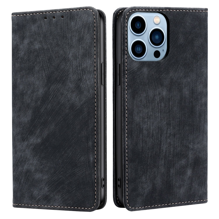 Funda de Cuero Magnético para iPhone 13 Pro con Protección RFID y Cepillo Antirrobo (Negro)