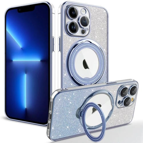 Estuche para Teléfono iPhone 13 Pro Rotación Magsafe Holder TPU con Brillo Degradado (Azul Sierra)