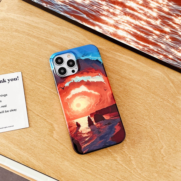 Estuche para Teléfono iPhone 14 2 En 1 con Patrón de Mar y Pintura al Óleo Desmontable (Rojo)