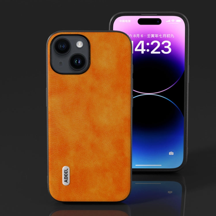 Funda para iPhone 14 Abeel Dual Color Lichi Texture Pu Phone Case (Naranja)