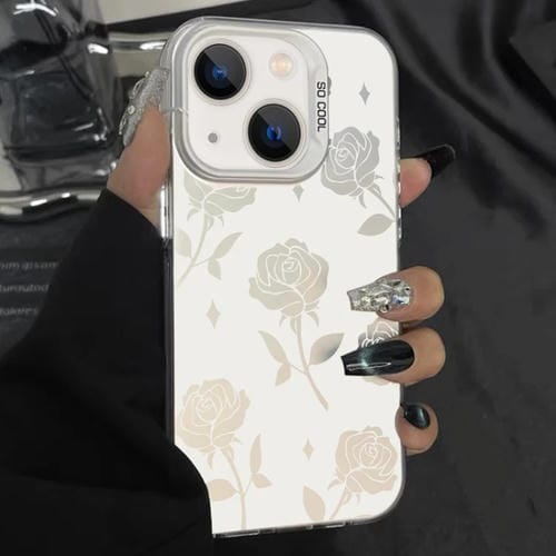 Caja de Teléfono Híbrida TPU para PC para iPhone 14 con Pintura Plateada (Blanco Rosa Hueco)