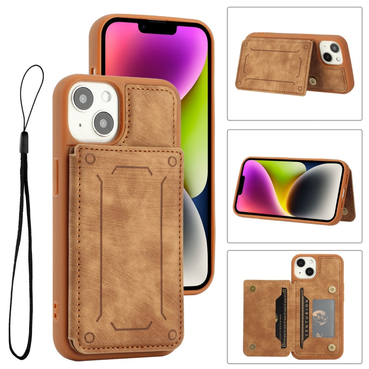 Funda para iPhone 14 Dream Magnetic Back Cover Card Wallet Phone Case (Marrón)