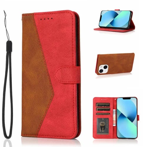 Estuche para Teléfono iPhone 14 Cuero Costuras de Dos Colores (Marrón Rojo)